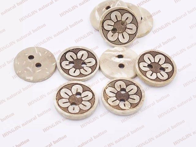 Coconut shell buttons has the natural eco-friendly feature,it takes a lot of grinding work.But after removes the hard shell,we could get a cream-colored spots embryo button,nature and beautiful,and coconut shell buttons easy to process into various shapes,even can be carved.Make it has been well received by the market.