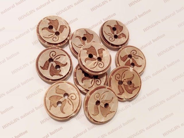 Coconut shell buttons has the natural eco-friendly feature,it takes a lot of grinding work.But after removes the hard shell,we could get a cream-colored spots embryo button,nature and beautiful,and coconut shell buttons easy to process into various shapes,even can be carved.Make it has been well received by the market.