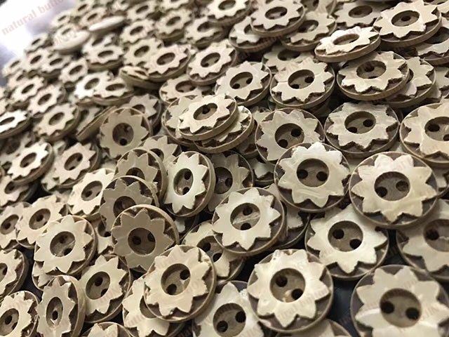 Coconut shell buttons has the natural eco-friendly feature,it takes a lot of grinding work.But after removes the hard shell,we could get a cream-colored spots embryo button,nature and beautiful,and coconut shell buttons easy to process into various shapes,even can be carved.Make it has been well received by the market.