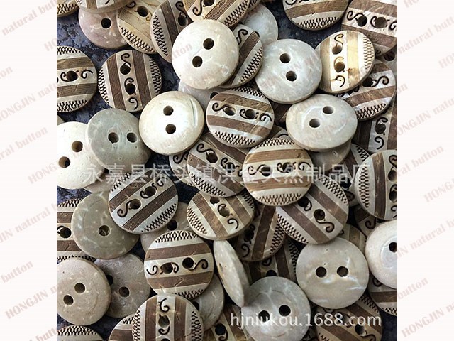 Coconut shell buttons has the natural eco-friendly feature,it takes a lot of grinding work.But after removes the hard shell,we could get a cream-colored spots embryo button,nature and beautiful,and coconut shell buttons easy to process into various shapes,even can be carved.Make it has been well received by the market.