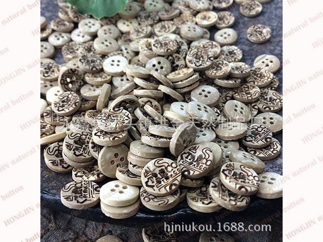 Coconut shell buttons has the natural eco-friendly feature,it takes a lot of grinding work.But after removes the hard shell,we could get a cream-colored spots embryo button,nature and beautiful,and coconut shell buttons easy to process into various shapes,even can be carved.Make it has been well received by the market.