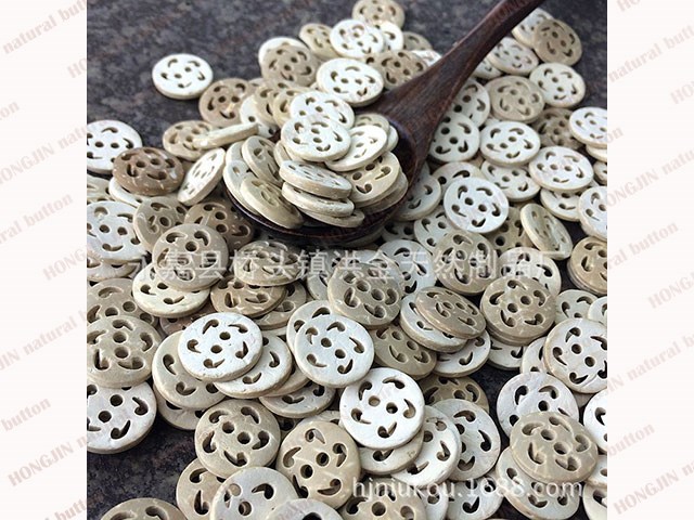 Coconut shell buttons has the natural eco-friendly feature,it takes a lot of grinding work.But after removes the hard shell,we could get a cream-colored spots embryo button,nature and beautiful,and coconut shell buttons easy to process into various shapes,even can be carved.Make it has been well received by the market.
