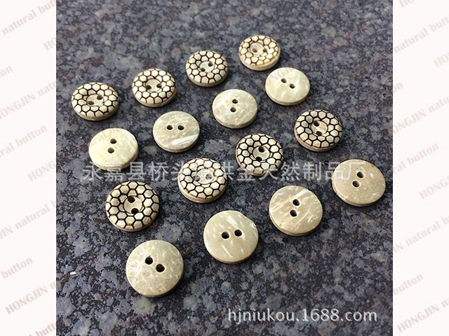 Coconut shell buttons has the natural eco-friendly feature,it takes a lot of grinding work.But after removes the hard shell,we could get a cream-colored spots embryo button,nature and beautiful,and coconut shell buttons easy to process into various shapes,even can be carved.Make it has been well received by the market.