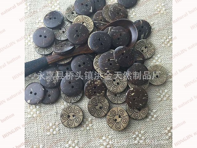 Coconut shell buttons has the natural eco-friendly feature,it takes a lot of grinding work.But after removes the hard shell,we could get a cream-colored spots embryo button,nature and beautiful,and coconut shell buttons easy to process into various shapes,even can be carved.Make it has been well received by the market.