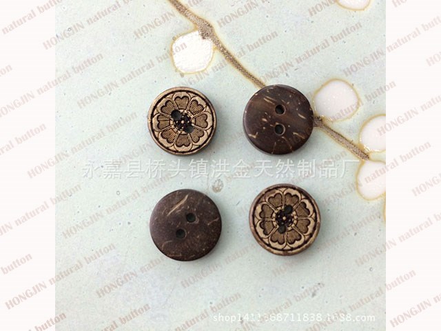 Coconut shell buttons has the natural eco-friendly feature,it takes a lot of grinding work.But after removes the hard shell,we could get a cream-colored spots embryo button,nature and beautiful,and coconut shell buttons easy to process into various shapes,even can be carved.Make it has been well received by the market.