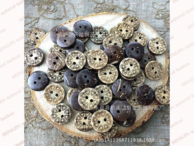 Coconut shell buttons has the natural eco-friendly feature,it takes a lot of grinding work.But after removes the hard shell,we could get a cream-colored spots embryo button,nature and beautiful,and coconut shell buttons easy to process into various shapes,even can be carved.Make it has been well received by the market.
