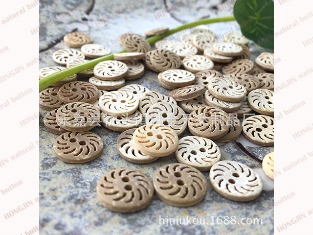 Coconut shell buttons has the natural eco-friendly feature,it takes a lot of grinding work.But after removes the hard shell,we could get a cream-colored spots embryo button,nature and beautiful,and coconut shell buttons easy to process into various shapes,even can be carved.Make it has been well received by the market.
