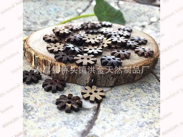 Coconut shell buttons has the natural eco-friendly feature,it takes a lot of grinding work.But after removes the hard shell,we could get a cream-colored spots embryo button,nature and beautiful,and coconut shell buttons easy to process into various shapes,even can be carved.Make it has been well received by the market.
