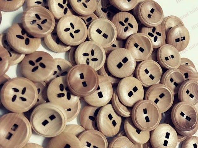 Wooden button with natural wooden texture, extremely simple and natural, this feature contrasts sharply with the high gloss of the button.